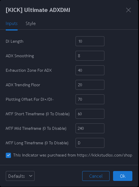 - You can specify up to 3 additional timeframes to monitor in the dot map below the ADX chart that will give you a generalized idea of the trend on those larger timeframes. In these heat maps, the color red indicates a down trend and green an up trend. The brighter colors denote strong trends while the darker colors are weaker. Grey dots in the heat map indicate no strong trend present. Some users actually prefer to turn off the main ADX and DMI visualizations and only display the multi-timeframe heatmap as a way of checking higher timeframe trends before entering their trades.You can specify up to 3 additional timeframes to monitor in the dot map below the ADX chart that will give you a generalized idea of the trend on those larger timeframes.